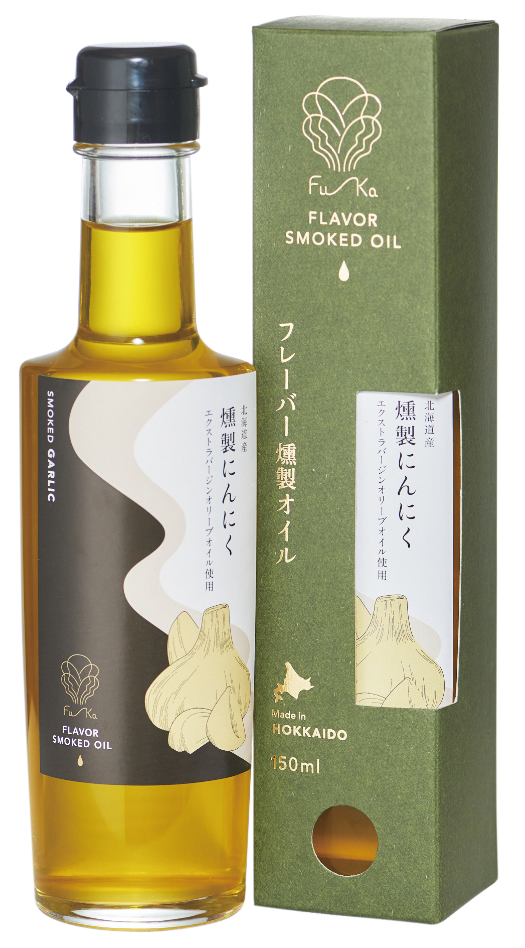 燻製した北海道産無農薬ニンニクと燻製エクストラバージンオリーブオイルの無敵の組み合わせ。まわしかけるだけでおもてなしの一品に昇格する万能調味料です。