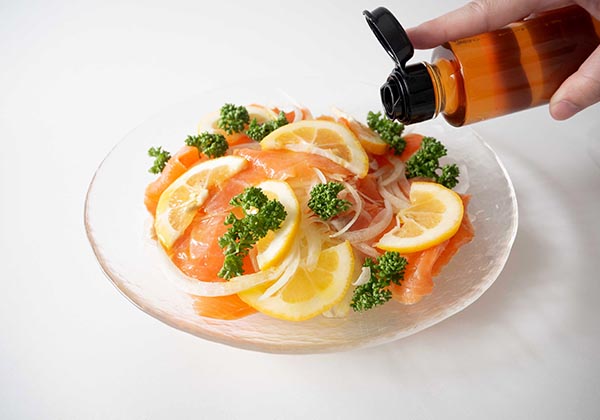 料理にひと足しすると、ふくよかな燻香とさわやかな酸味が素材を引き立て、いつのも一皿を味わい深く変身させます。